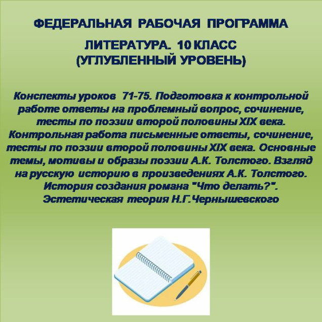 Урок 72. Контрольная работа письменные ответы, сочинение, тесты по поэзии второй половины XIX века.