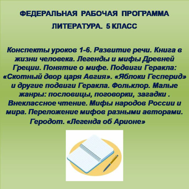 Конспекты уроков соответствуют обновленной федеральной рабочей программе по литературе для 5 класса (2025 год)