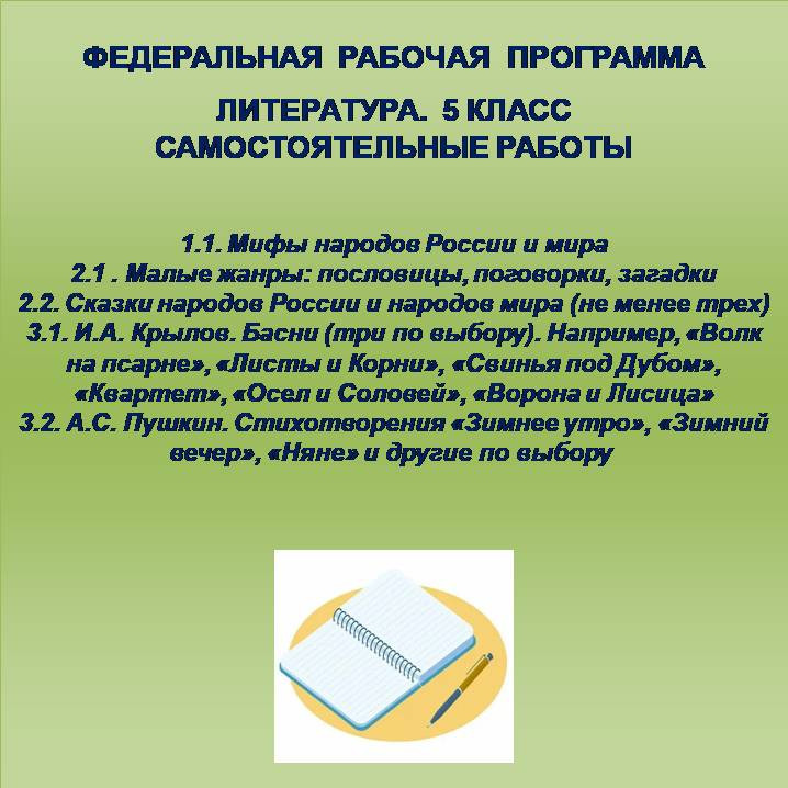 Самостоятельные работы по литературе составлены в соответствии с ПЕРЕЧНЕМ (КОДИФИКАТОРОМ) РАСПРЕДЕЛЕННЫХ ПО КЛАССАМ ПРОВЕРЯЕМЫХ ТРЕБОВАНИЙ К РЕЗУЛЬТАТАМ ОСВОЕНИЯ ОСНОВНОЙ ОБРАЗОВАТЕЛЬНОЙ ПРОГРАММЫ ОСНОВНОГО ОБЩЕГО ОБРАЗОВАНИЯ И ЭЛЕМЕНТОВ СОДЕРЖАНИЯ ПО ЛИТЕРАТУРЕ