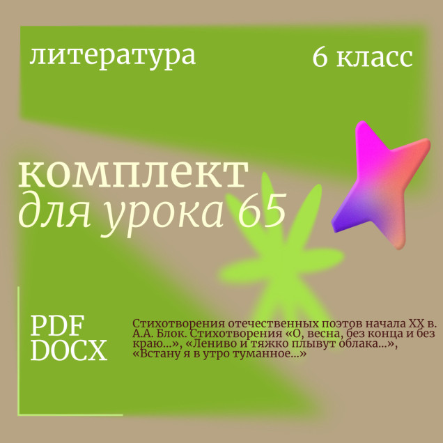 1. Конспект урока 65 “Стихотворения отечественных поэтов начала XX в. А.А. Блок. Стихотворения «О, весна, без конца и без краю…», «Лениво и тяжко плывут облака…», «Встану я в утро туманное…»”