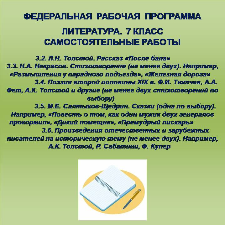 3.3. Н.А. Некрасов. Стихотворения (не менее двух). Например, «Размышления у парадного подъезда», «Железная дорога»