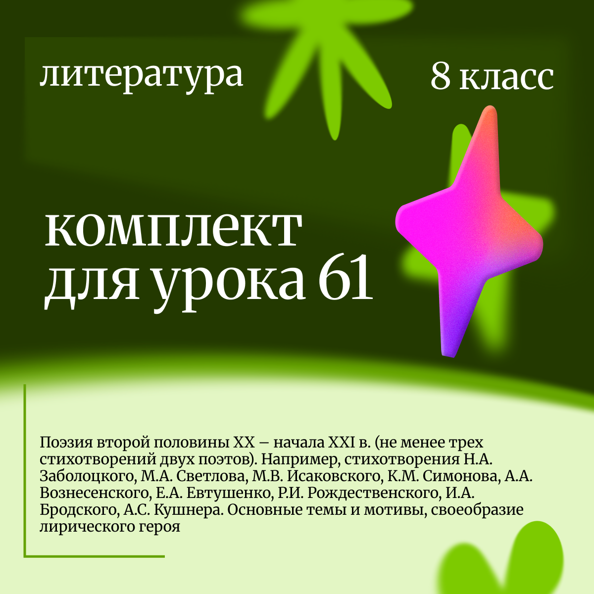 Комплект: Литература. Поэзия второй половины XX – начала XXI в. (Н. Заболоцкий, Е. Евтушенко). 8 класс, урок 61