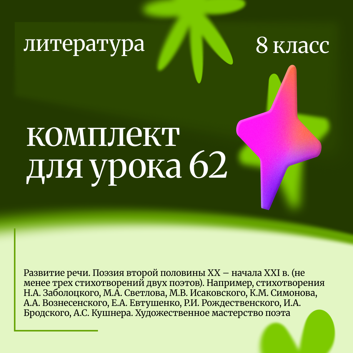 Комплект: Литература. Поэзия второй половины XX – начала XXI в. Художественное мастерство поэта (8 класс, урок 62)