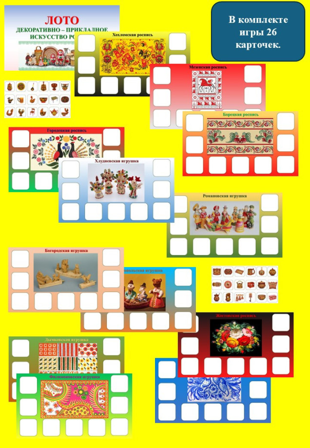 Цель игры: закрепить представления об основных элементах какой-либо росписи, научить вычленять отдельные элементы узора, развить наблюдательность, внимание, память и быстроту реакции, вызвать интерес к росписи.