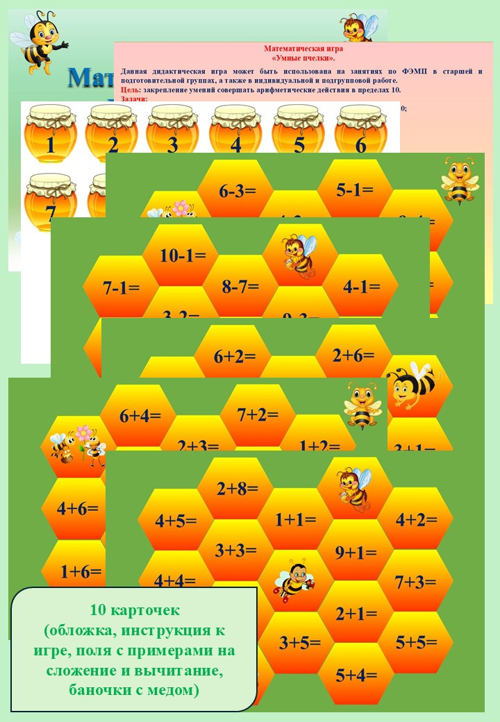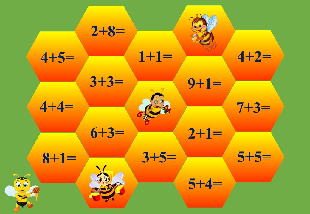 Оборудование: соты с примерами на сложение и вычитание, баночки с цифрами.