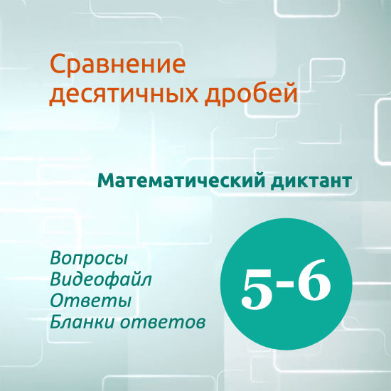 Математический диктант для урока математики в 5-6 классах по теме "Сравнение десятичных дробей".