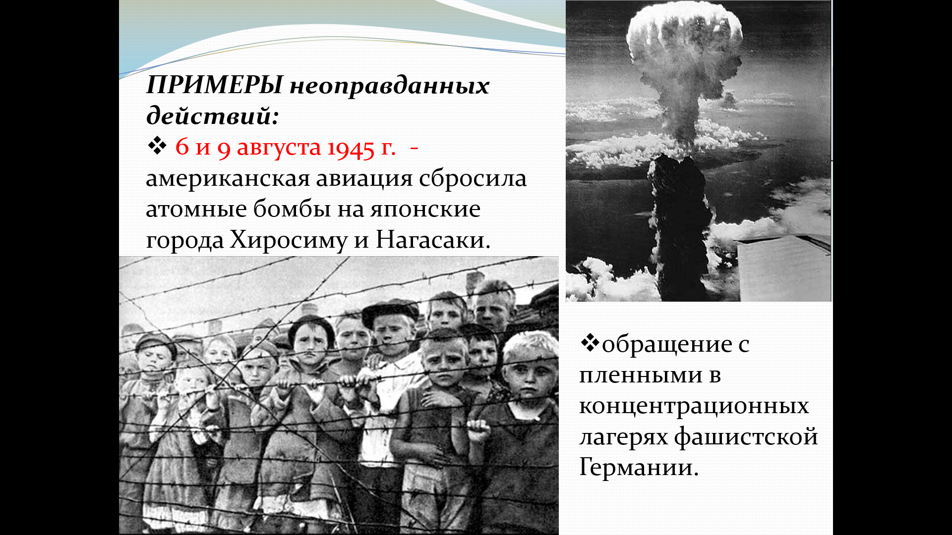 ✅ Исторические примеры (Хиросима и Нагасаки, концлагеря)