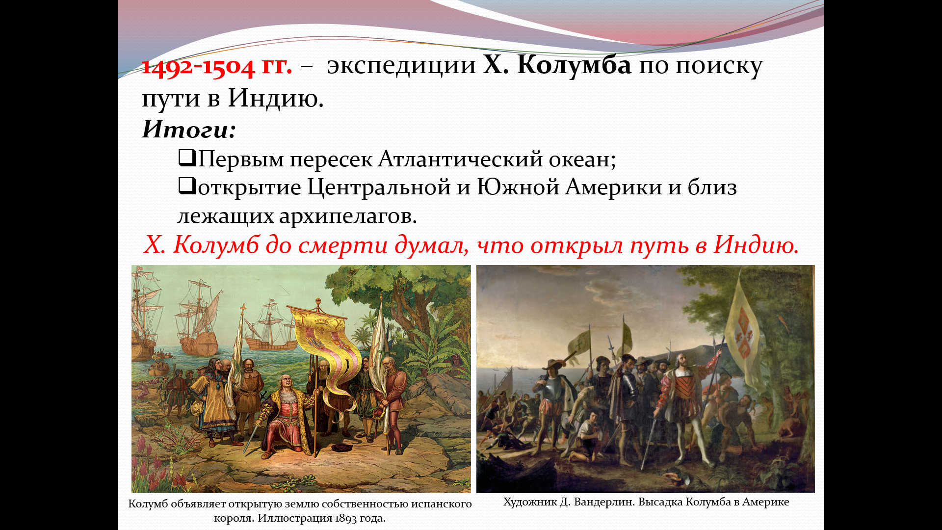 Познакомить с экспедициями Христофора Колумба и Васко да Гамы.