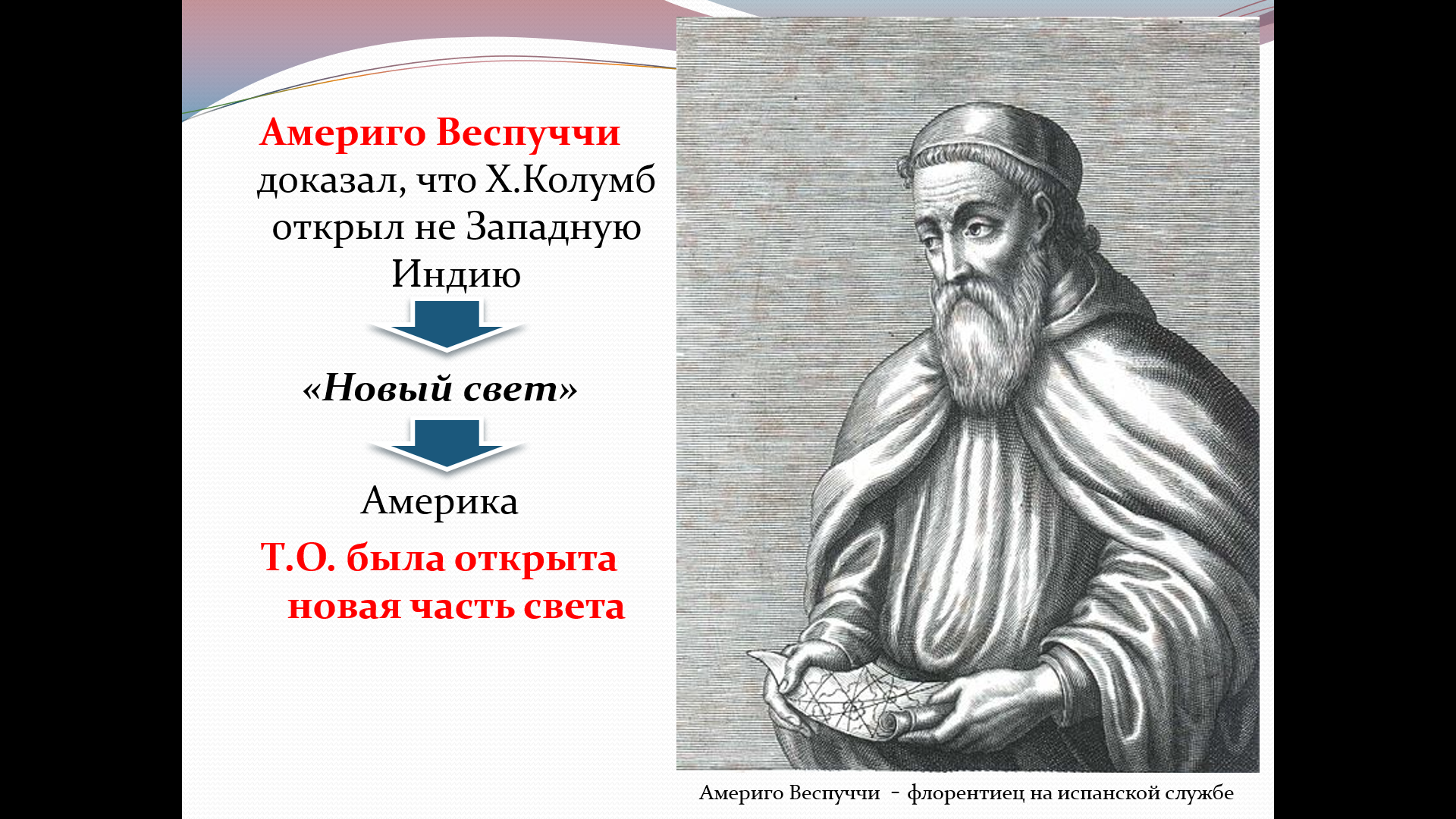 Наглядность: Карты экспедиций, портреты мореплавателей (Колумб, Веспуччи, да Гама), иллюстрации (высадка Колумба, астролябия, первые изображения новых культур).