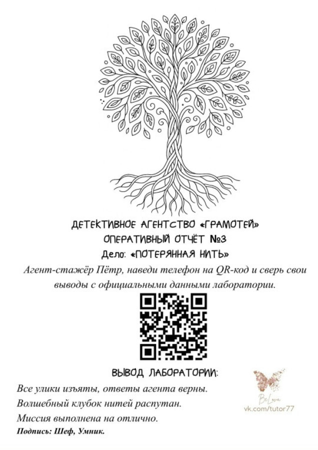 СРОЧНОЕ СООБЩЕНИЕ ИЗ ДЕТЕКТИВНОГО АГЕНТСТВА «ГРАМОТЕЙ»!💯 ПУТАНИК ВЕРНУЛСЯ — И ЭТО ЕГО ПОСЛЕДНИЙ БОЙ!💡 📖Представляю третью часть пособия-квеста: «Миссия выполнима. Операция "ПОТЕРЯННАЯ НИТЬ"» Теперь Коварный Путаник похитил Волшебный Клубок нитей, который скрепляет все смыслы в языке. Ваш юный агент должен стать хранителем смыслов и спасти Дерево русского языка от увядания! ЧТО ВНУТРИ: ✅ Текст для анализа с тайнами природы ✅ 12 оперативных заданий в формате ВПР ✅ Раскраска-награда «Дерево жизни» ✅ QR-код с ответами для самопроверки Финальная битва с Путаником уже началась. Готов ли ваш агент стать настоящим ГРАМОТЕЕМ? Пришло время завершить путь от стажёра до профессионала! Форма работы ВПР полностью сохранена, но вплетена в захватывающий сюжет. Пособие состоит из трёх частей (3 варианта ВПР). 3 часть ( один вариант ВПР) - PDF-файл, 4 полных листа.