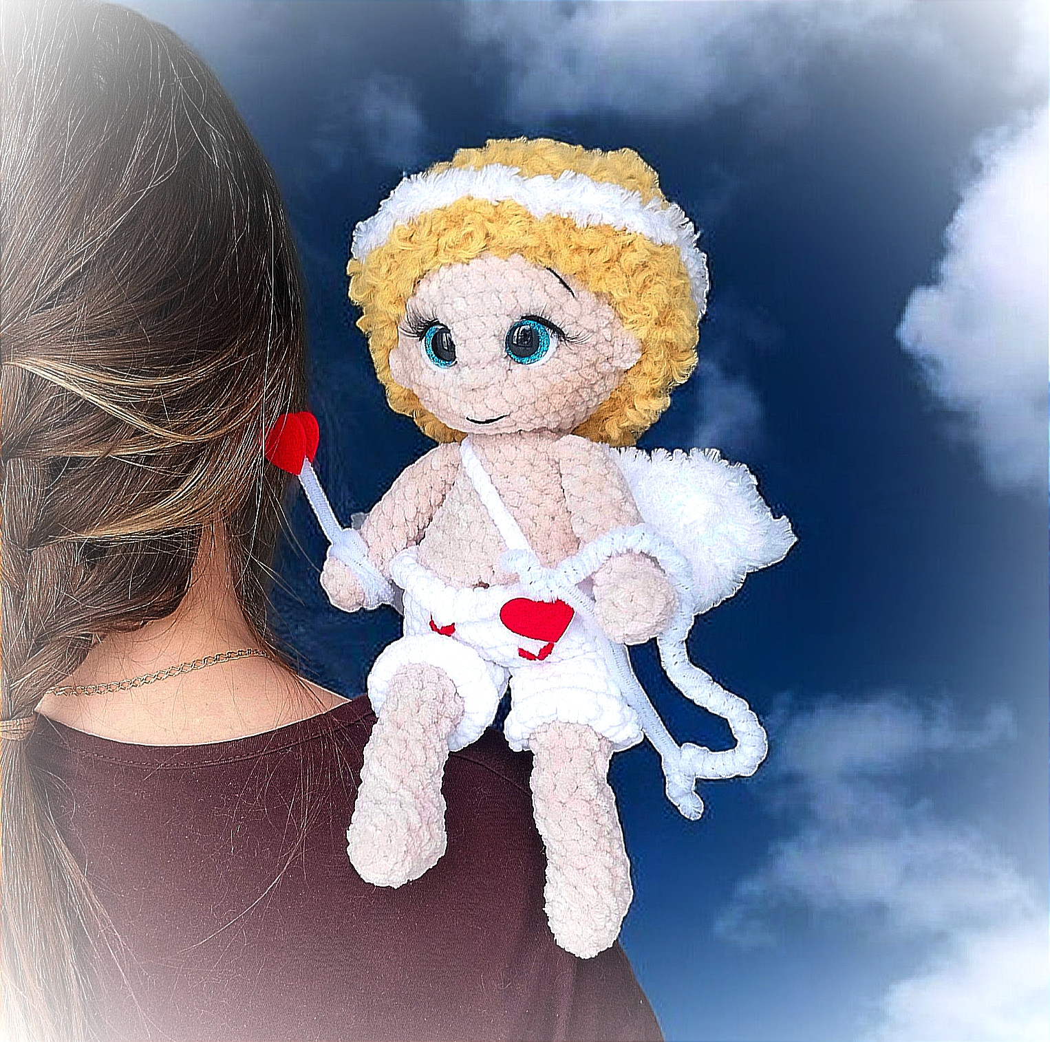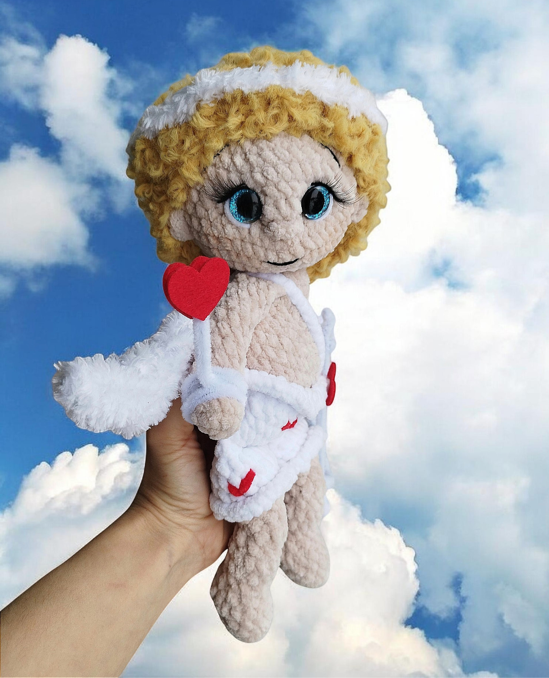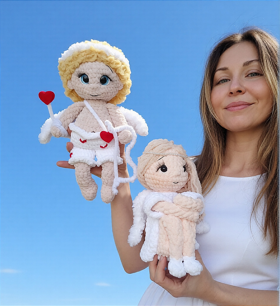 💘🪽Игрушка цельновязанная, пришиваются крылышки и парик (по желанию можно приклеить)
