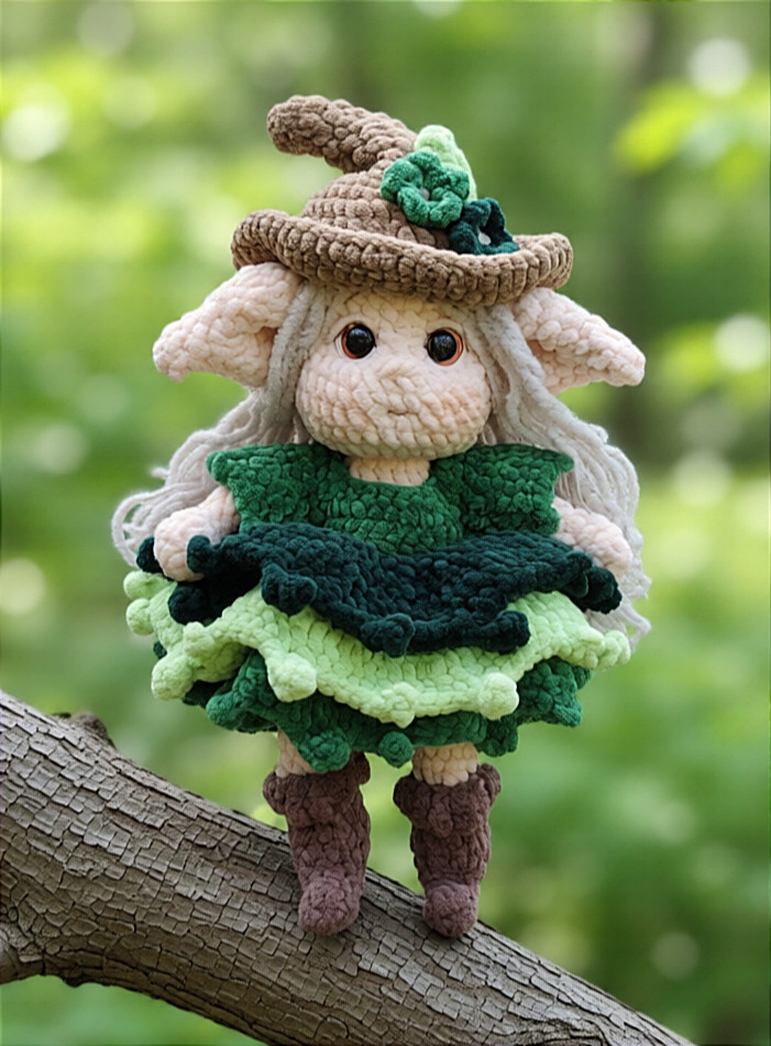 🧚♀️🍃Игрушка цельновязанная. Пришиваются ушки и цветочки (шляпа по желанию)