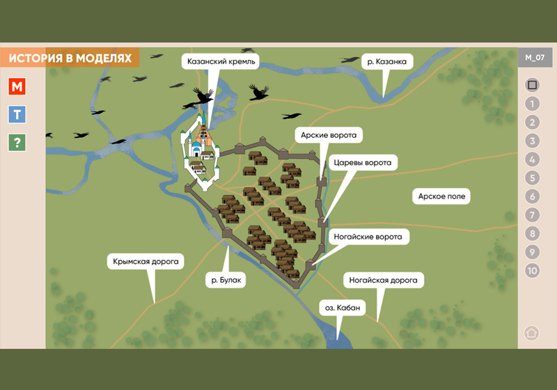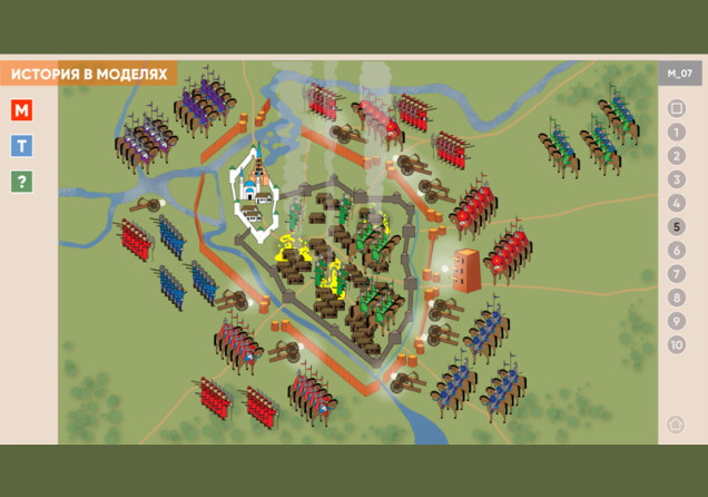 Интерактивная модель события (битвы). Представляет собой динамическую схему с элементами анимации и графическими изображениями, иллюстрирующими его отдельные этапы или элементы. Файл также включает краткое описание события и два задания.