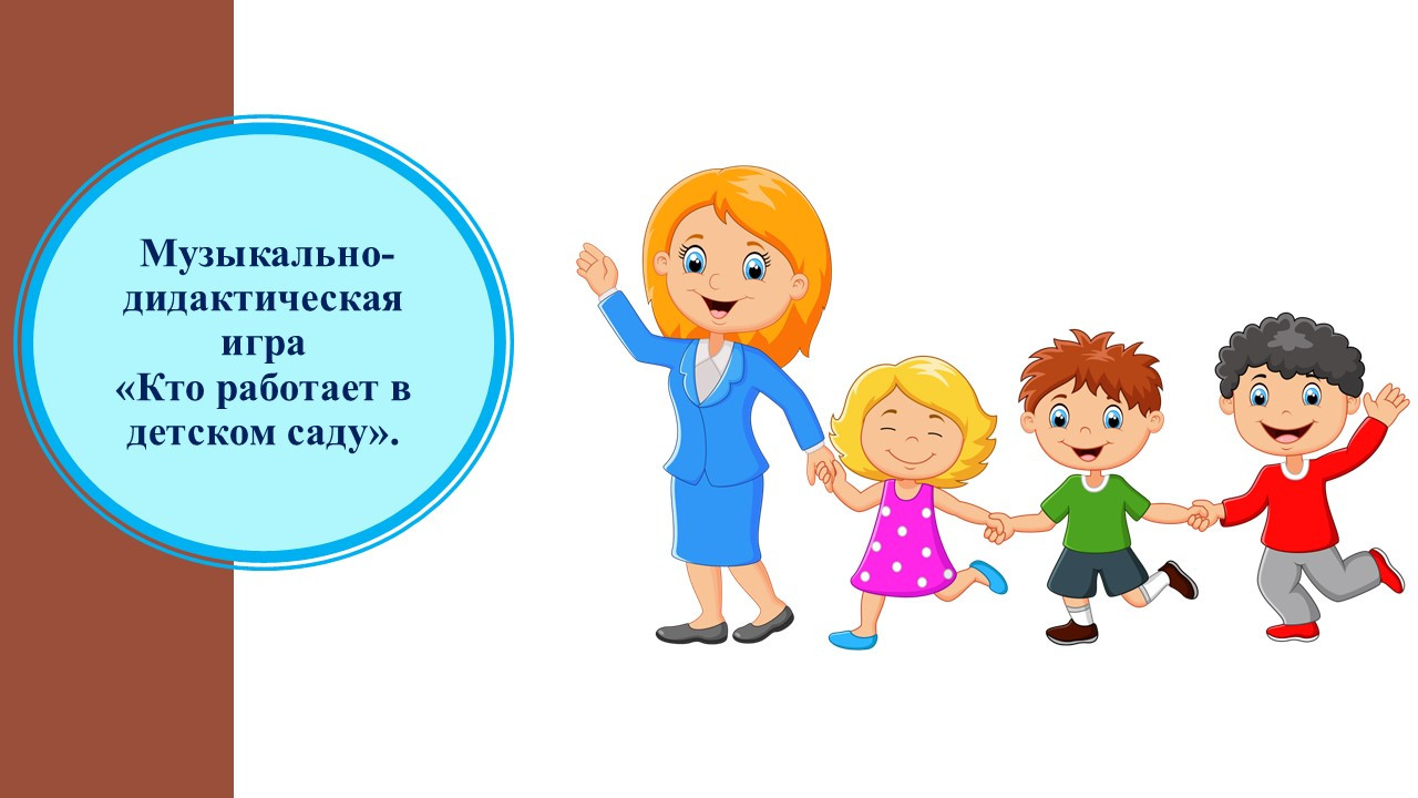 Музыкально-дидактическая игра «Кто работает в детском саду» — детская игра, которая предназначена для детей от 5 лет. Целью ее является ознакомление детей с профессиями сотрудников детского сада.