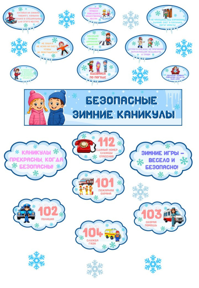 Оформление доски «Безопасные зимние каникулы»