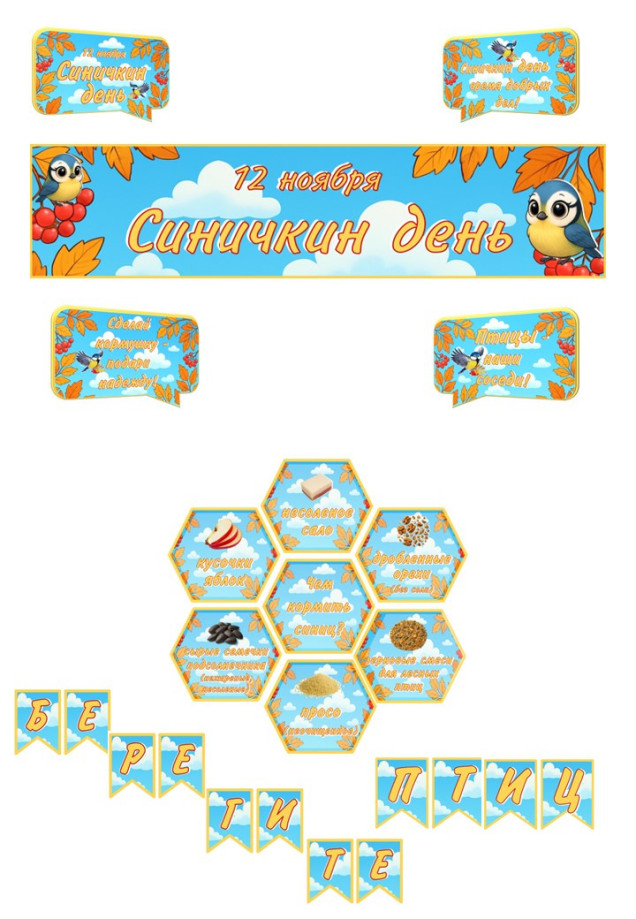 Комплект станет отличным помощником в оформлении стендов, классных уголков и выставок, посвящённых зимующим птицам и заботе о природе.