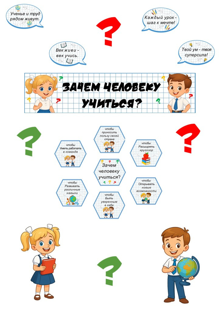 1) Баннер "Зачем человеку учиться?" (на трёх листах формата А4);