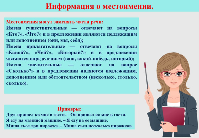 использовать местоимения в устной и письменной речи для избежания повторов и связи предложений.