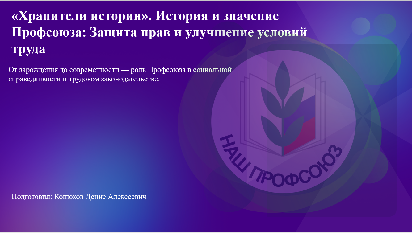 Цель этой презентации — познакомить вас с историей создания и развития Профсоюза.