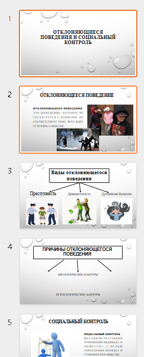 презентация "Отклоняющиеся поведения и социальный контроль" состоит из 10 слайдов