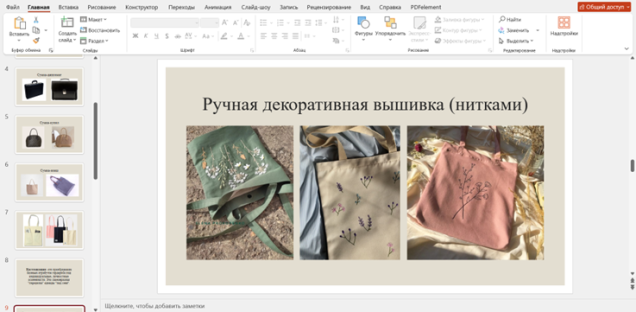 Как правило, ребятам очень нравится работать над конструированием, моделированием и пошивом шоппера, но всё-таки самая интересная часть - украсить его, выполнив дизайн в одной из предложенных техник.