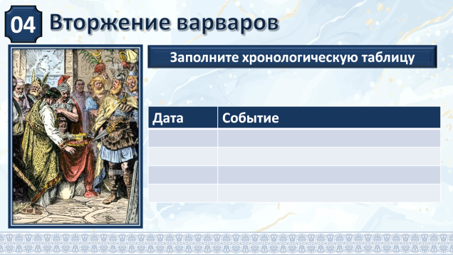 Понять, почему могущественная Римская империя перестала существовать. Узнать о ключевых изменениях в жизни империи: появлении колонов, реформах Диоклетиана, усилении христианской церкви и нашествии варваров.