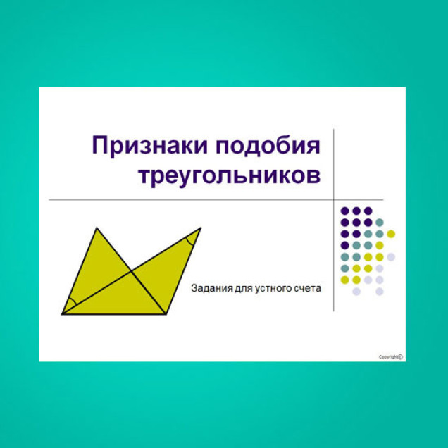 Упражнения для устного счета для урока геометрии в 8-9 классах. Позволяет закрепить признаки подобия треугольников. Рассматриваются разные варианты подобных треугольников. Предлагается устно объяснить - почему они подобны.