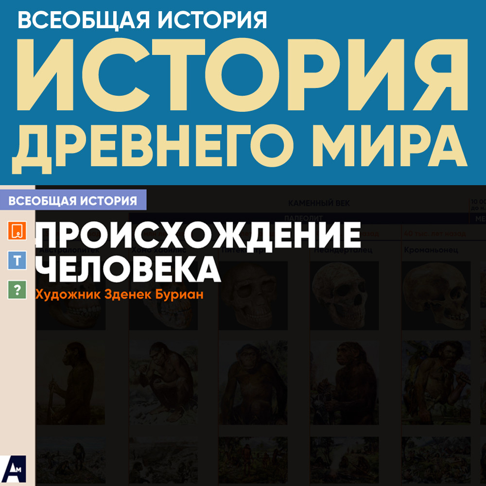 Интерактивная реконструкция на основе работ чешского ученого и художника Зденека Буриана. Позволяет рассмотреть внешний облик предков человека и проследить его эволюцию.