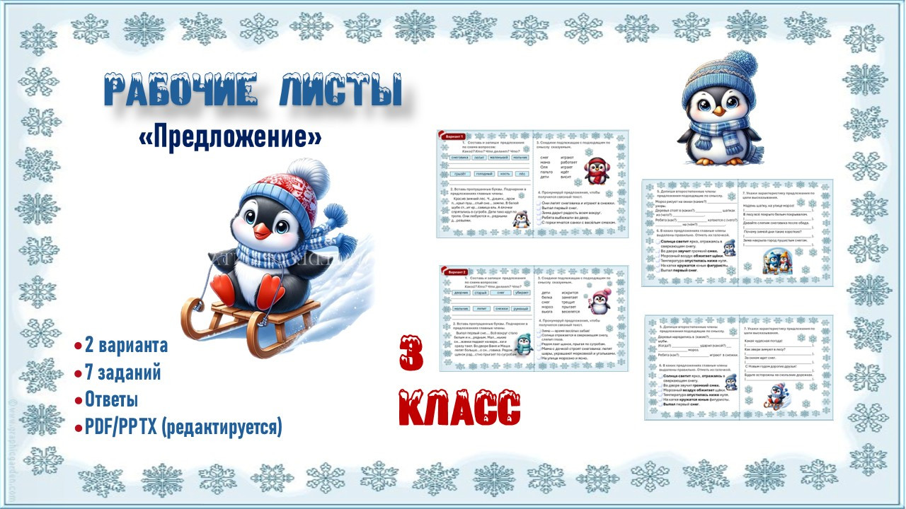 Рабочие листы по теме «Предложение» для 3 класса — это дидактические материалы, которые помогают систематизировать знания о предложении как основной единице речи, закрепить навыки распознавания, анализа и составления предложений.