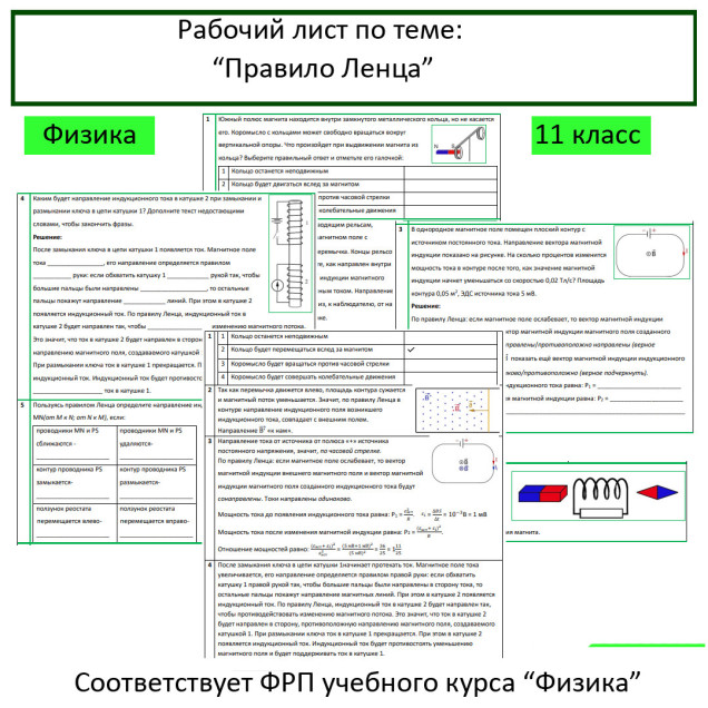 Рабочий лист по теме «Правило Ленца» в соответствии с