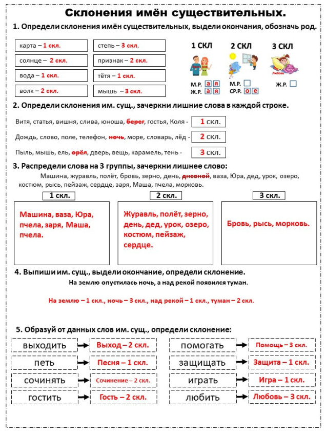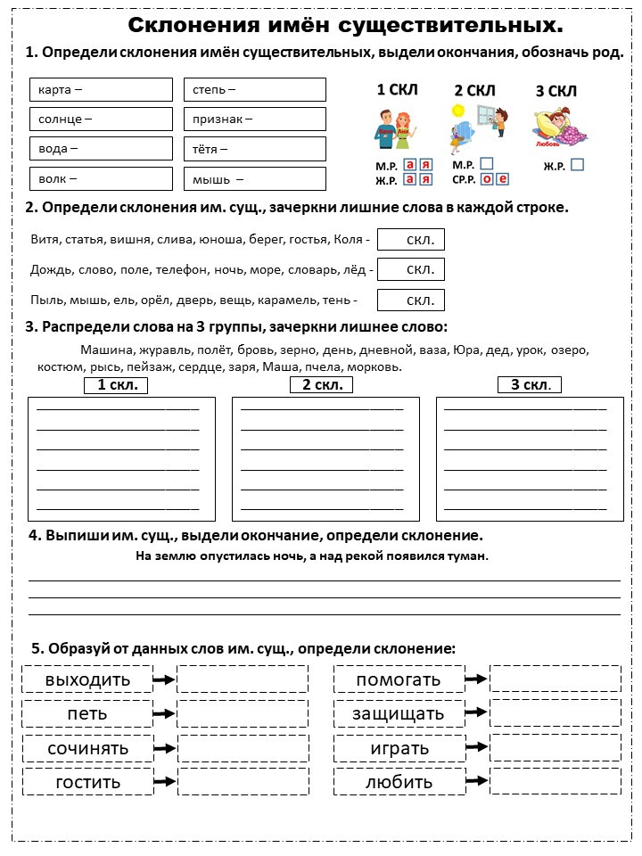 Рабочий лист создан для отработки знаний по теме: Три склонения имён существительных.