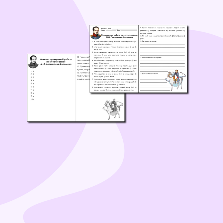 Тест на знание содержания пьесы А.Н. Островского «Гроза» для учеников 10-ого класса включает в себя два варианта (первый и второй лист), а также правильные ответы (третий лист). Наличие картинок (например, портрет автора) развивают у учеников память, внимательность и наблюдательность и делают решение самостоятельной работы более интересным. Есть несколько видов заданий: 1) где нужно выбрать один вариант ответа; 2) самостоятельно вписать ответ; 3) соотнести реплику с героем, которому она принадлежит.