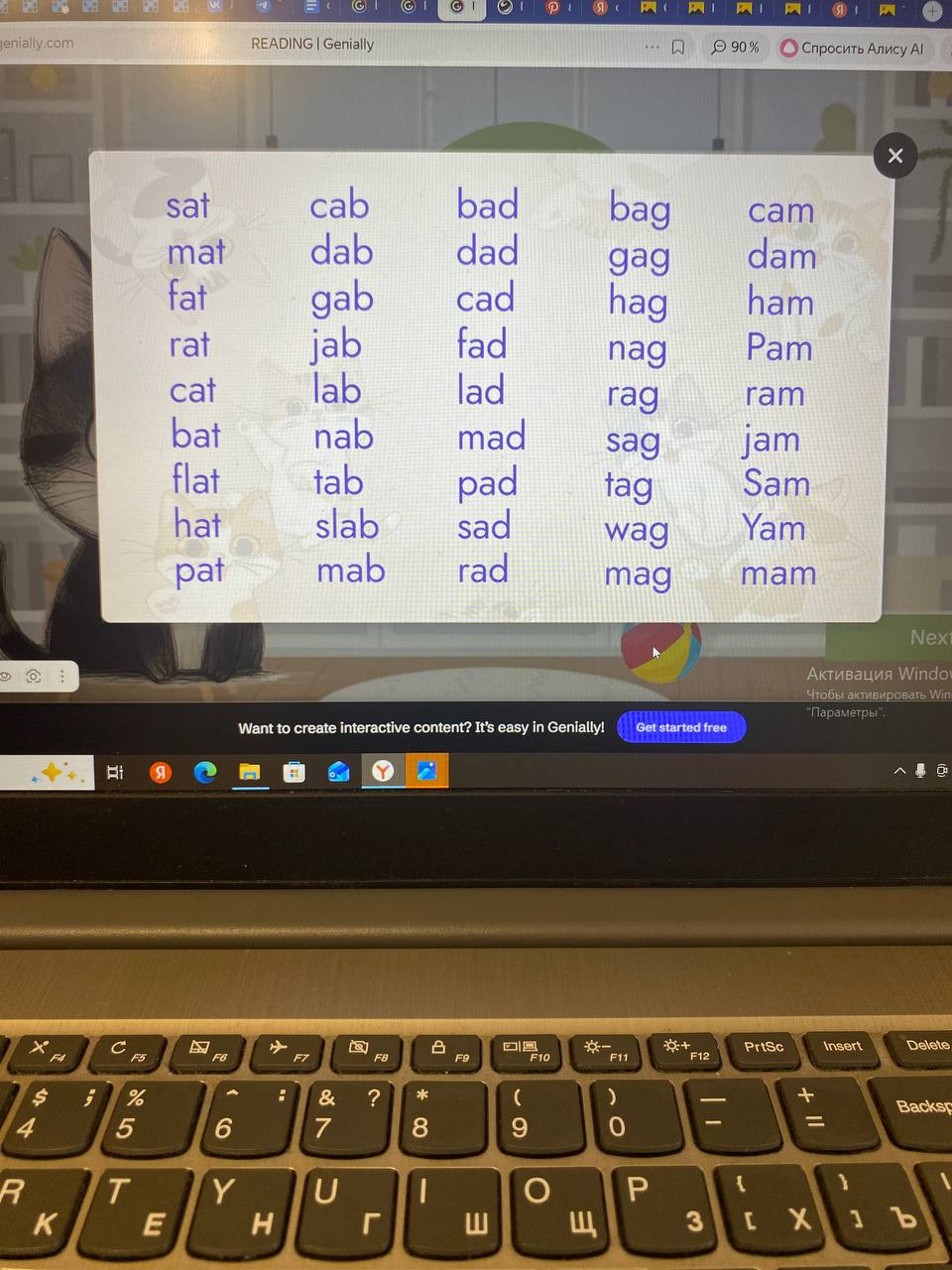 Милая разработка по чтению, которая обязательно заинтересует детей Презентация на сайте genially, разработанная для детей, только начинающих обучаться чтению. В презентации представлены слайды, посвященные пяти гласным буквам английского алфавита, чтению закрытых слогов. Использовать можно как в качестве разминки, так и эффектного завершения урока Презентацию вышлю вам на почту В подарок к презентации будет идти презентация по повышению уровня мотивации маленьких учеников с подробной инструкцией