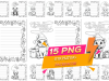 15 разных PNG-файлов с трогательными иллюстрациями в едином стиле, которые вы печатаете сами - хоть на плотном картоне, хоть на акварельной бумаге для особых эффектов. Можно раскрашивать фломастерами, карандашами, красками или даже пастелью.