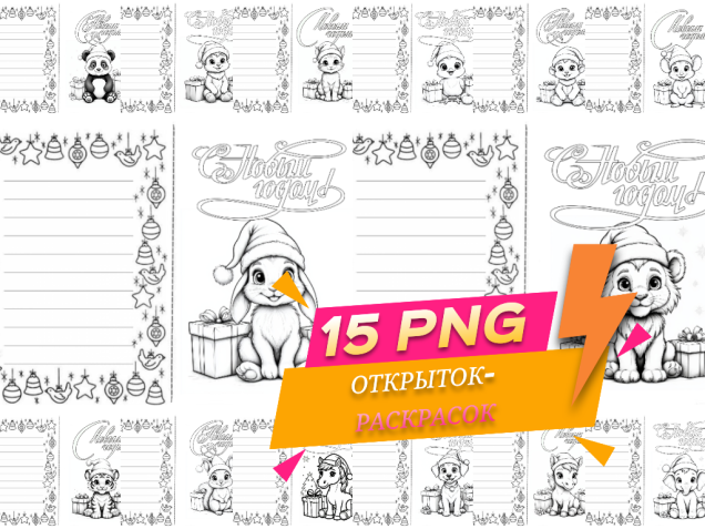 Это не просто раскраски - это готовый творческий мир для вашего ребенка. Набор из 15 уникальных открыток с очаровательными новогодними зверятами станет источником радости и развития.