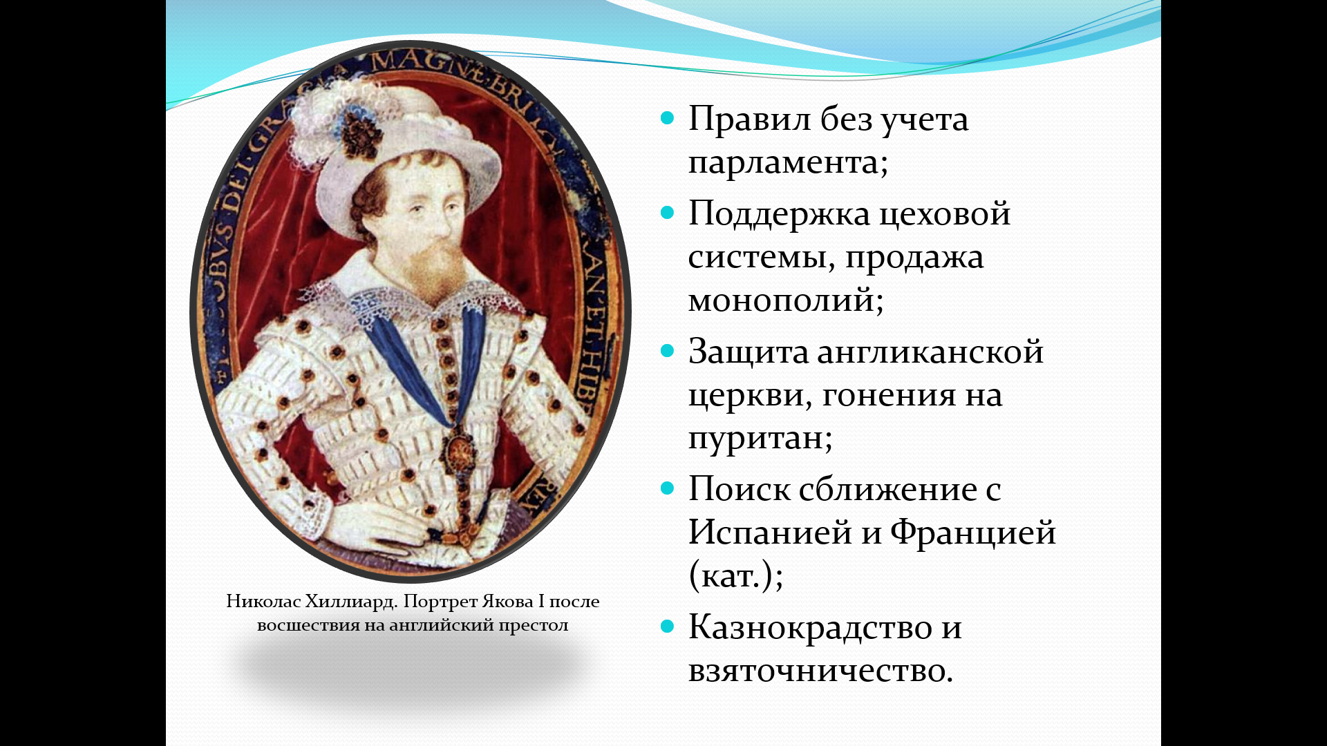 Наглядность: Портреты монархов и деятелей революции, карты военных действий, схемы (партийная система, структура парламента), иллюстрации (казнь Карла I, смерть Кромвеля).
