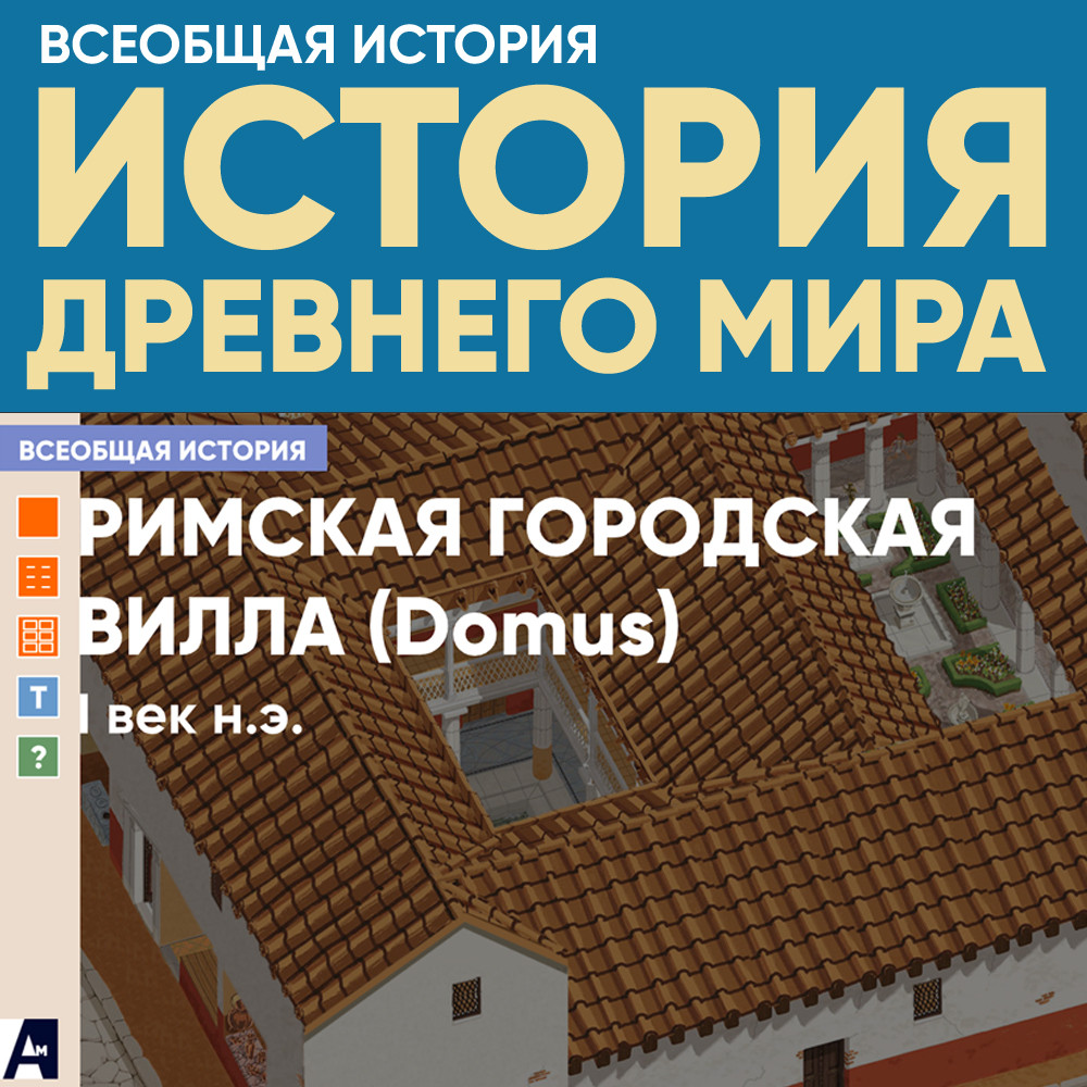 Интерактивная реконструкция типичной римской городской виллы на основе раскопок в Помпеях с презентацией внутренних помещений. Используется при изучении темы «Быт и досуг римлян».