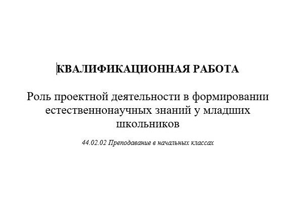 работу, направленную на выявления роли проектной технологии в формировании естественнонаучных