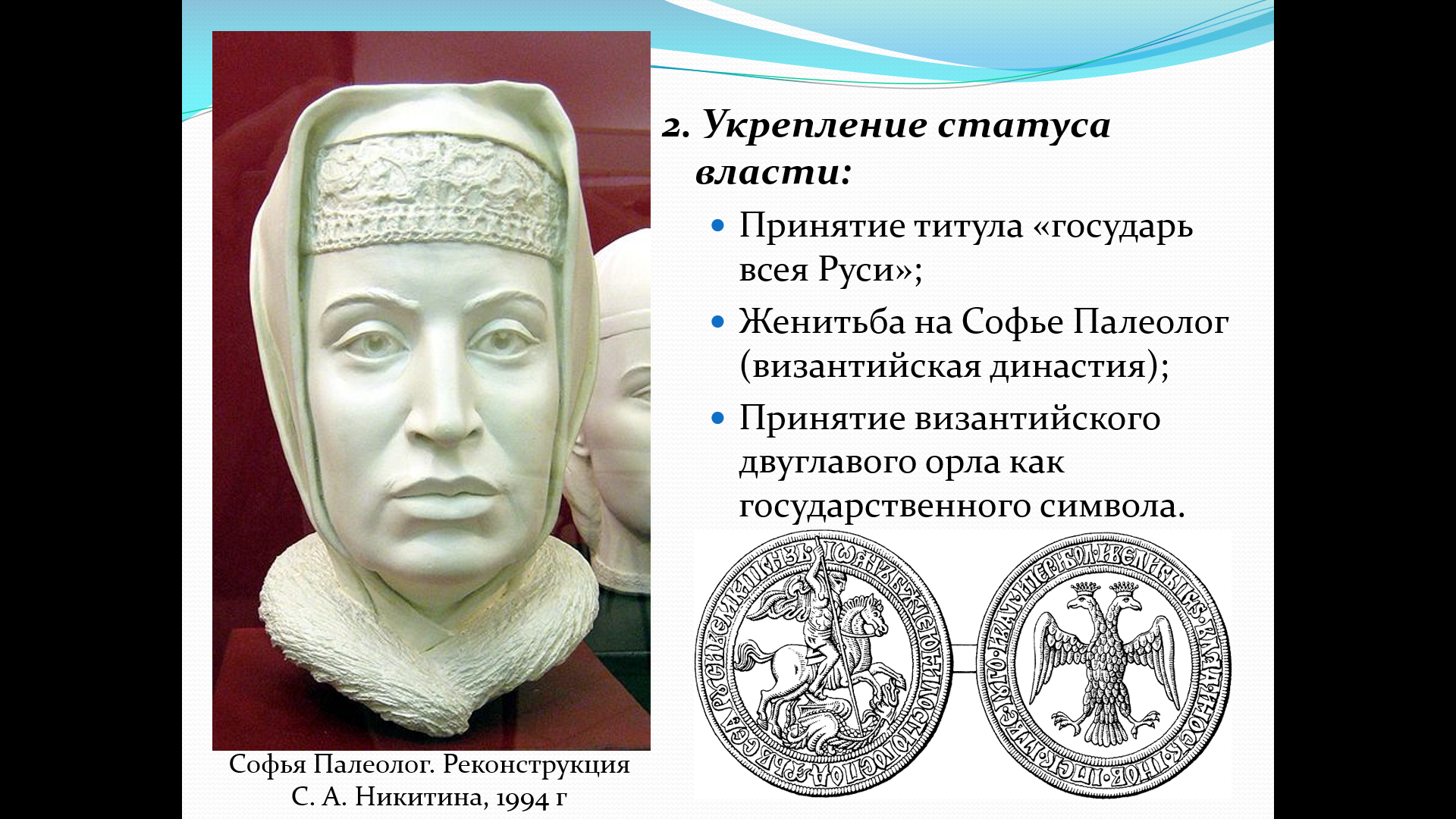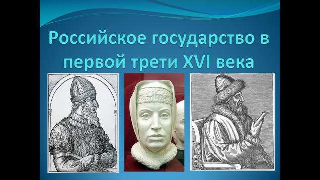 Наглядность: Портреты Ивана III и Василия III, гравюры, реконструкция Софьи Палеолог, схема управления, карта Российского государства.