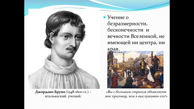 Почему учение Джордано Бруно вызвало гнев церкви? Объясните смысл его последних слов.