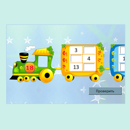 Математические тренажеры в виде интерактивных таблиц, диаграмм, числовых кроссвордов, примеров на все действия. Учащиеся могут выполнять различные виды работ: определять порядок действий в примерах, а затем их решать; отвечать на вопросы по предложенным диаграммам, что позволяет освоить восприятие величин, представленных в них; устанавливать соответствие между величинами; заполнять по определенным правилам интерактивные таблицы; ранжировать числовые величины, размещая их в порядке возрастания или убывания. Программа сразу проверяет правильность выполнения заданий.