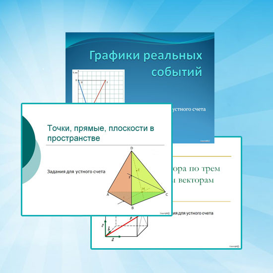 Упражнения для устного счета к урокам математики для 10-11 классов разрабатывались с учетом следующих принципов: применение простых и понятных формулировок заданий; наглядность; небольшие затраты времени (3-5 мин) на проведение; возможность проверки и объявления результатов на уроке с последующей коррекцией ошибок. Упражнения наглядны, разнообразны по форме проведения. Анимация, применяемая в них, позволяет понять вопрос и правильно на него ответить.