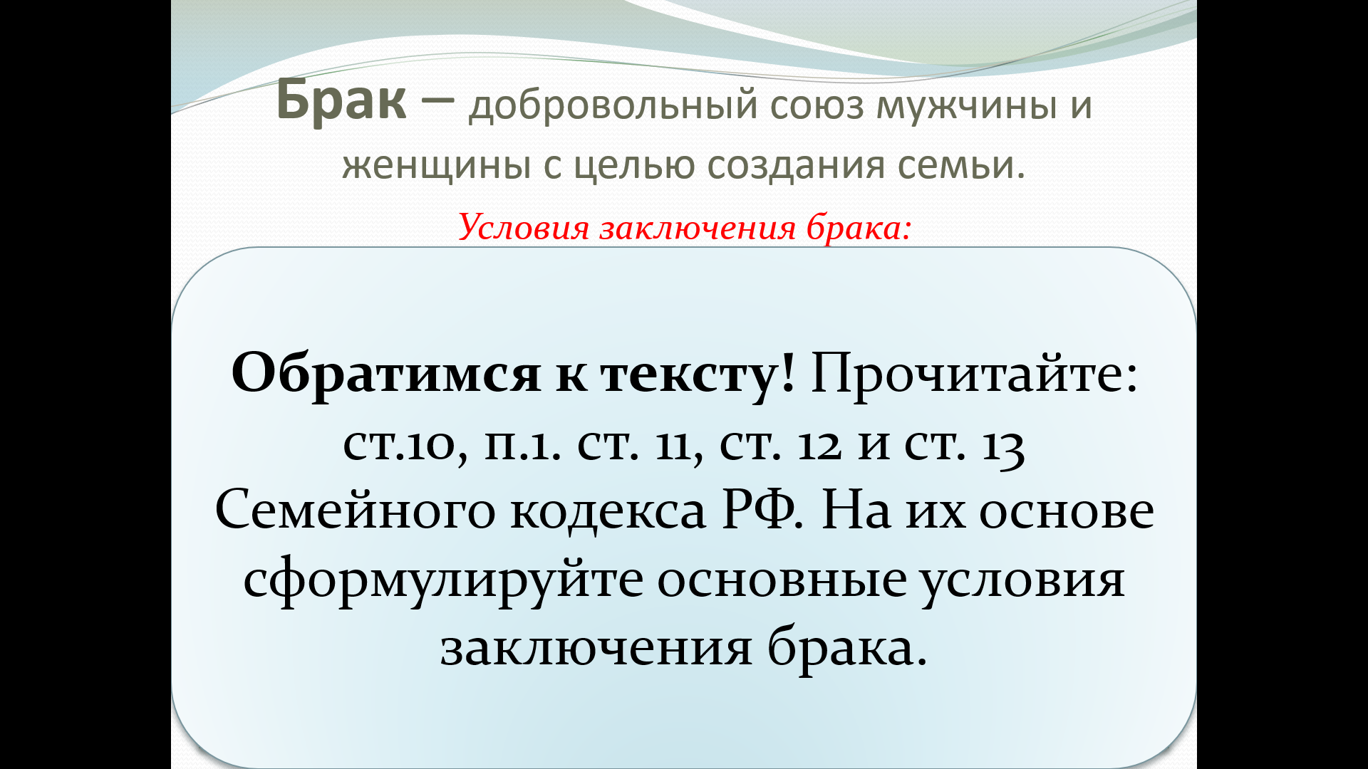 «Семейное право» — интерактивный учебный материал по обществознанию и правоведению