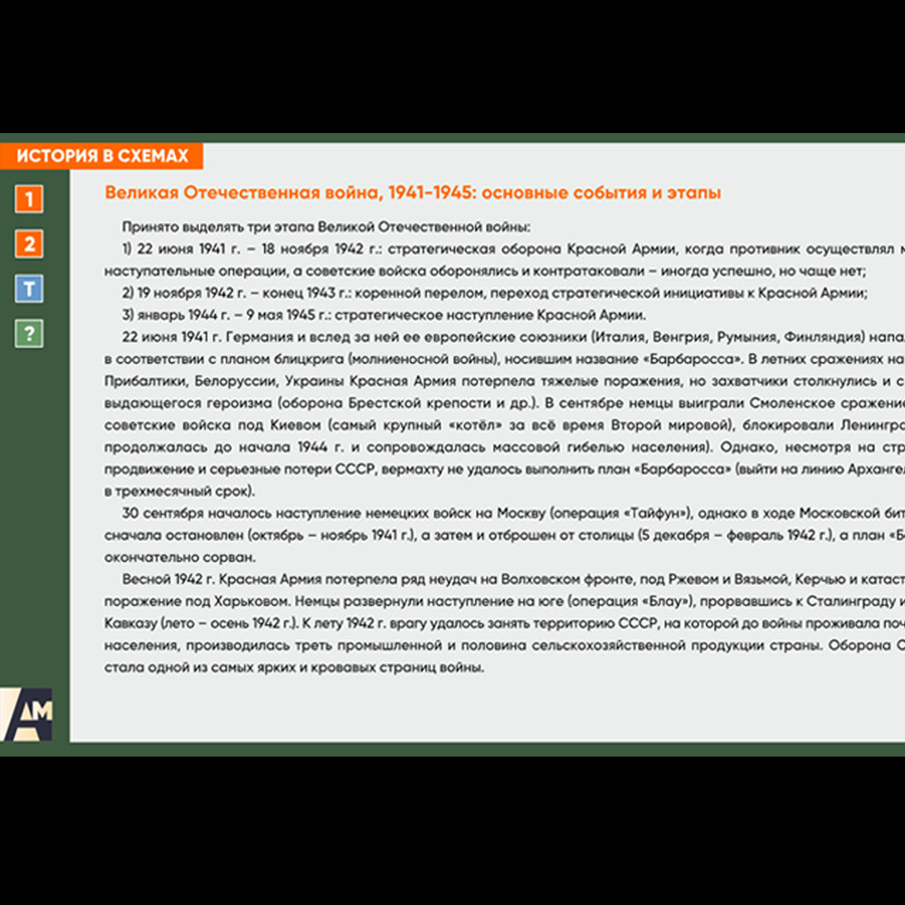 Интерактивная схема - Великая Отечественная война, основные события и этапы