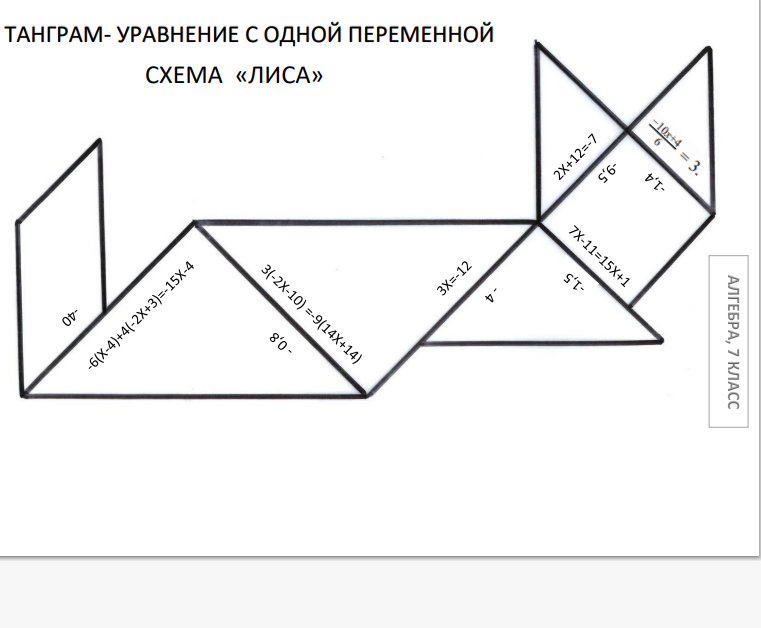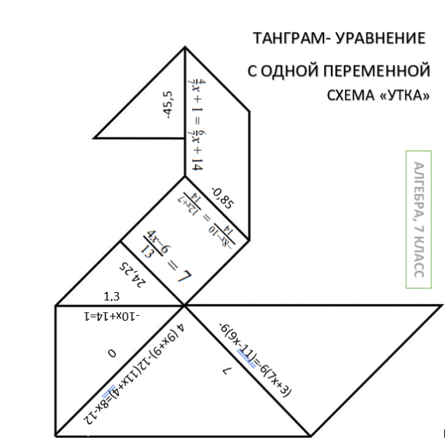 Цель использования танграма при изучении уравнений с одной переменной — визуализация абстрактных алгебраических понятий, развитие логического и пространственного мышления, а также повышение мотивации через игровую деятельность. Задачи включают соотнесение частей целого с элементами уравнения (коэффициенты, корни), конструирование геометрических фигур по заданным числовым параметрам и развитие навыков самостоятельного решения.