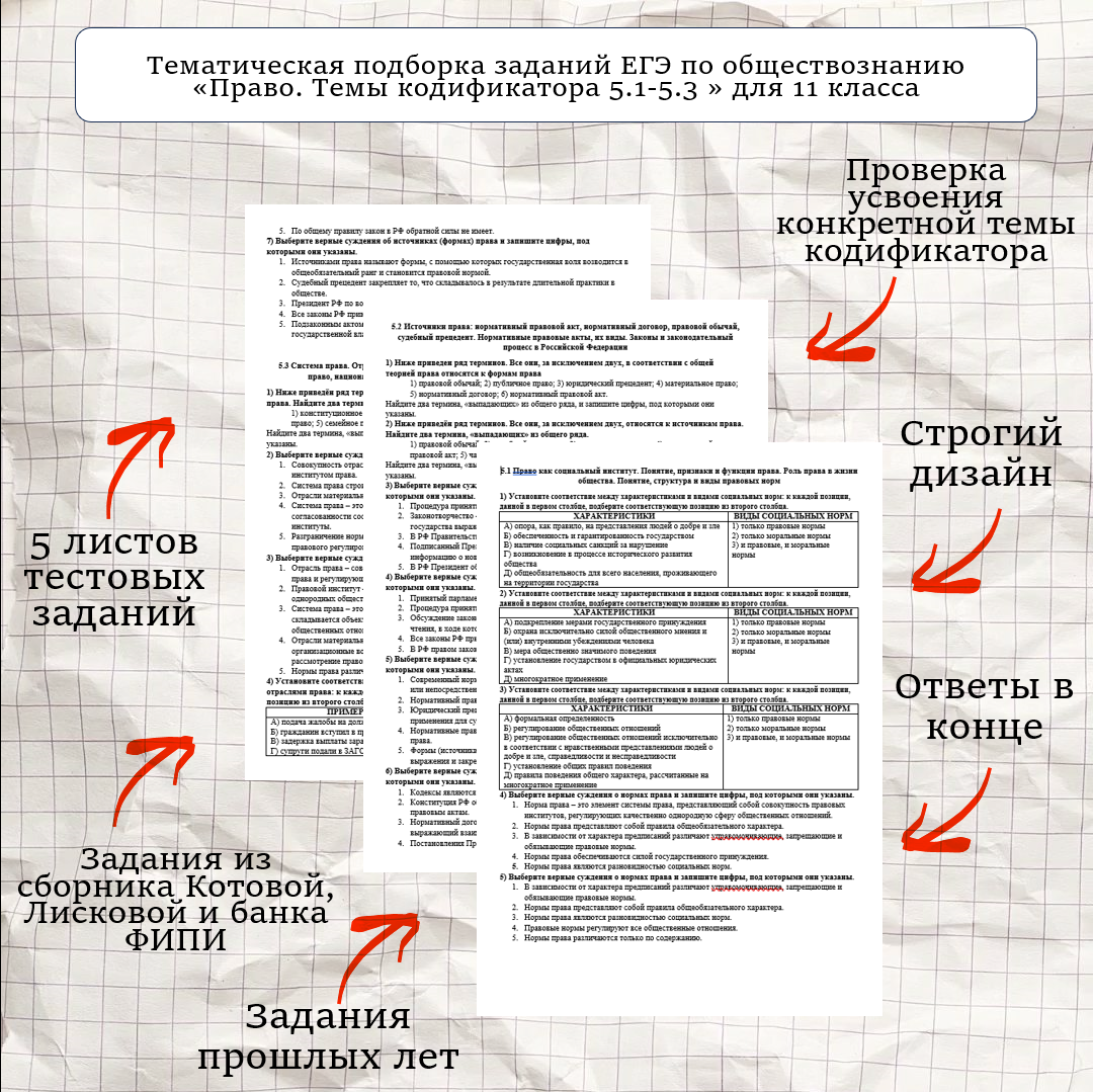 Тематическая подборка заданий ЕГЭ по обществознанию «Право. Темы кодификатора 5.1-5.3» для 11 класса