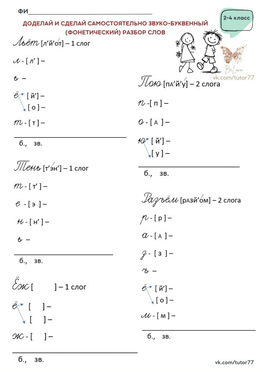 🔹 Рабочие листы, где ребенок делает разбор сам или «доделывает» за автора.