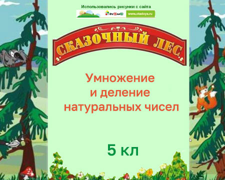 И проведем мы его, путешествуя по сказочному лесу! Какие ждут нас испытания, мы не знаем, но нам обязательно понадобятся знания о натуральных числах и мы должны уметь выполнять умножение и деление этих чисел, не забывая и о других действиях с числами. Обитатели сказочного леса увлечены математикой и хорошо ее знают.