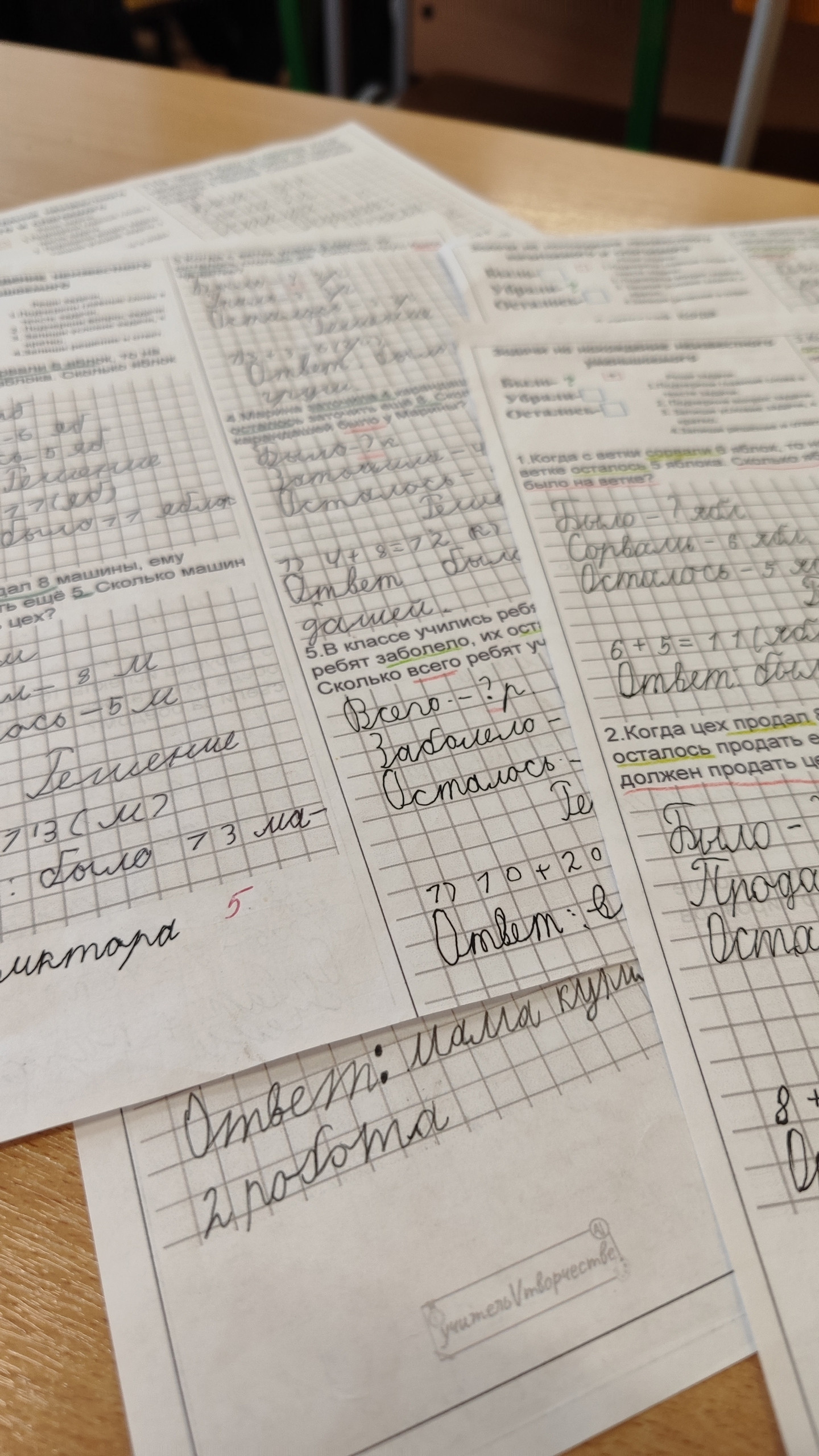 Один лист с задачами по 3 каждого вида на е неизвестного уменьшаемого, вычитаемого и слагаемых. С алгоритмом решения .