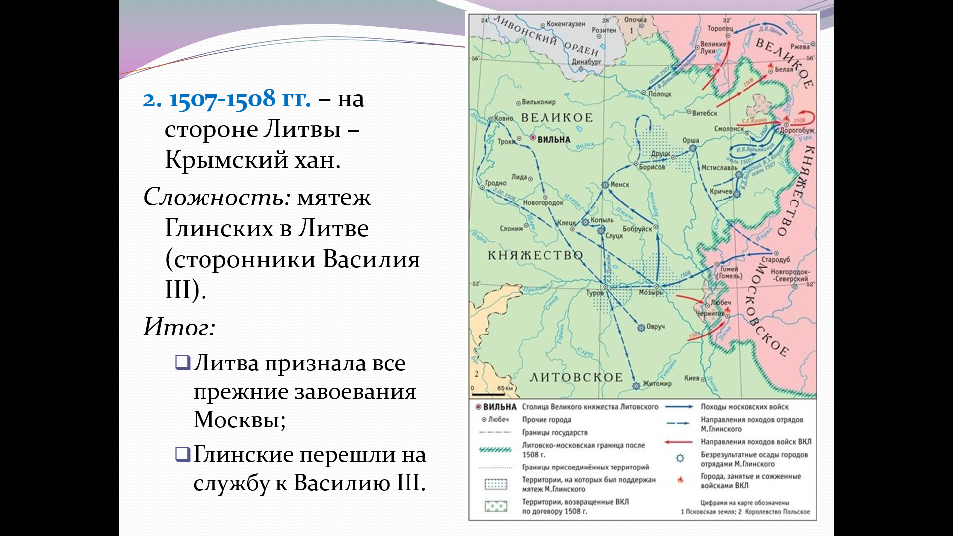 Наглядность: Портреты правителей (Василий III, Максимилиан I), карты военных действий, реконструкции крепостей (Тульский кремль, Коломенский кремль), схемы.